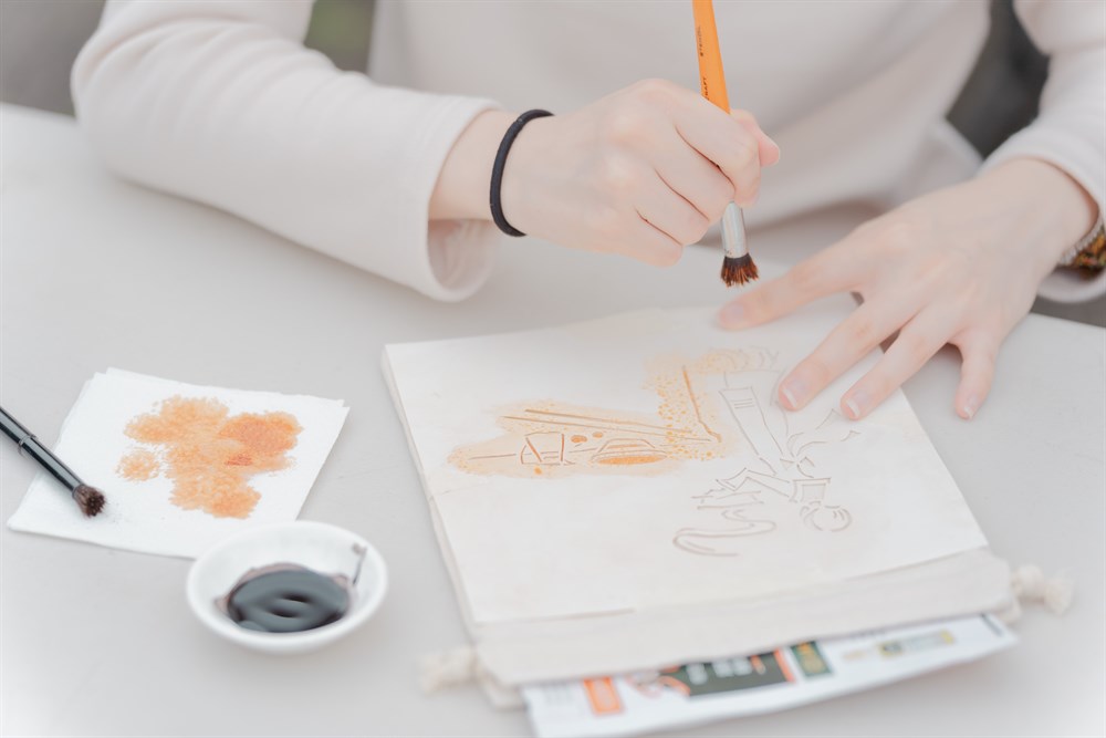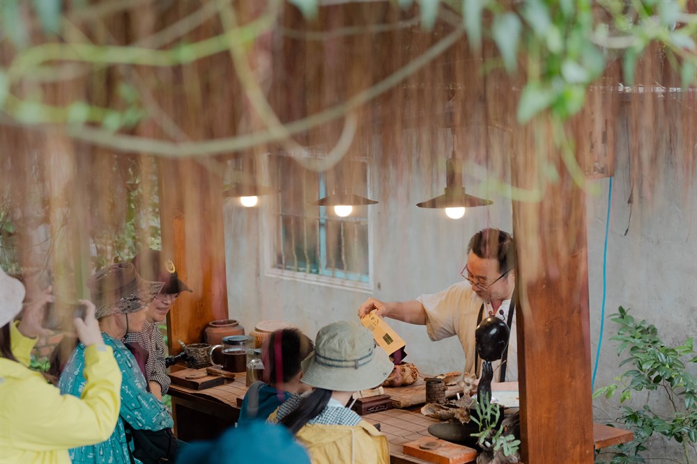 在老屋前,製作在地特色植物染小布包,將一整天的悠哉心情裝在袋子裡,品嚐關西在地的野放茶,純淨、奔放的清香浸盈心脾,聆聽主人吟唱客語的優雅,療癒著你我許久未有的歲月靜好。