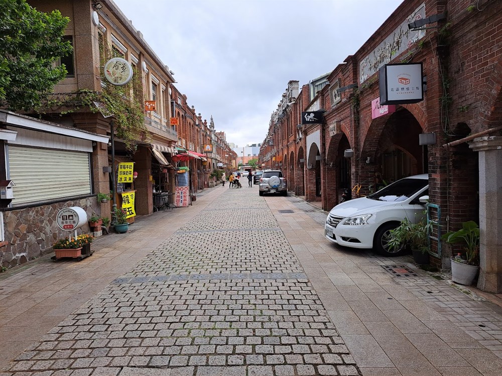 由舊車站原址上建造的天主堂至街底縣定古蹟三元宮全長約300公尺,寬約10公尺的街道,房舍全部以紅磚為建材,牌樓立面屬於羅馬巴洛克建築,架構採閩南式,兩側為長條形店舖住宅。