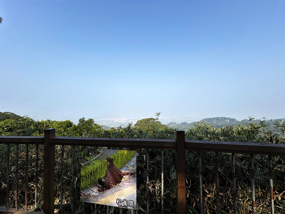 路線:天空之橋 → 八卦路253巷61弄50號 → 賞鷹步道 → 賞鷹平台→ 原路返回猴探井遊憩區廣場