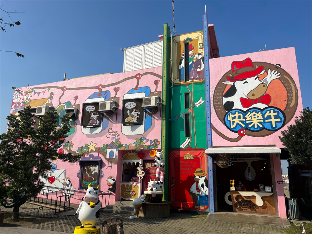 園區牛隻可讓民眾近距離接觸。「千巧谷牛樂園牧場」遠處就可看到以牛隻為主題的彩繪建築物,園區內融合在地農村特色,廁所以古畚亭為造型,四處可見乳牛造型的裝置藝術或坐或躺的在園內供民眾打卡拍照;商品展售館內販售多樣由千巧谷烘焙坊出產的麵包、伴手禮,所有乳製產品皆使用崙背鄉在地酪農所生產,可安心品嘗到最香純的美味。