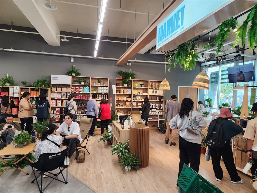 物產館二樓也會成為農業大學基地,鼓勵學員們可以互相分享,打造屬於自己的品牌,為夢想前進。農業物產館分三層樓,總樓地板計1,573坪,為全國最大,一樓為屏東好物農特產販售,二樓為《豐味屏東》特展及農業大學培訓中心,遊客於二樓及三樓迴廊可同步觀賞彩稻。開館結合樹藝雅石盆栽展活動,每一層樓皆有藝術盆景擺設,打造濃厚文青氣息。本次彩繪稻田圖案設計,以屏東風土人文為元素,將大武山、鵝鑾鼻燈塔、黑鮪魚、小琉球、大鵬灣等在地景觀特色融入,以黑、紫、黃、白、綠五色彩稻呈現,透過立體化轉圖技術展現屏東農業軟實力。