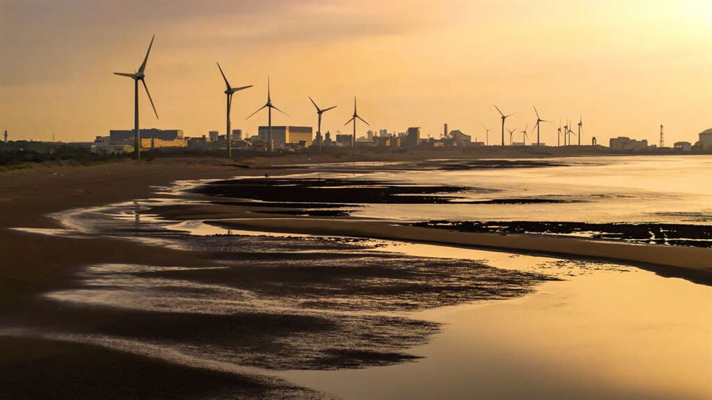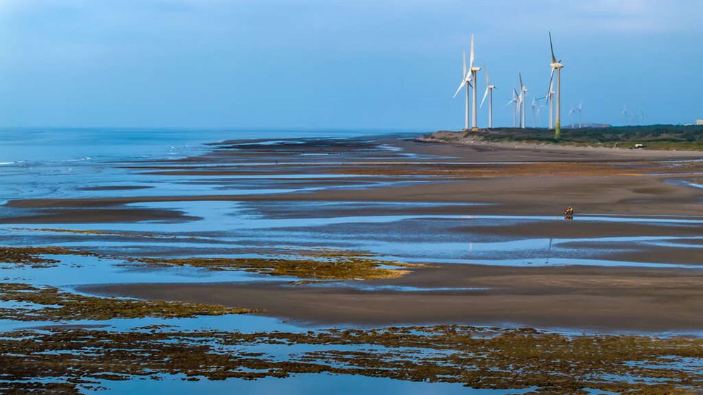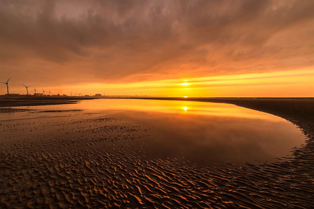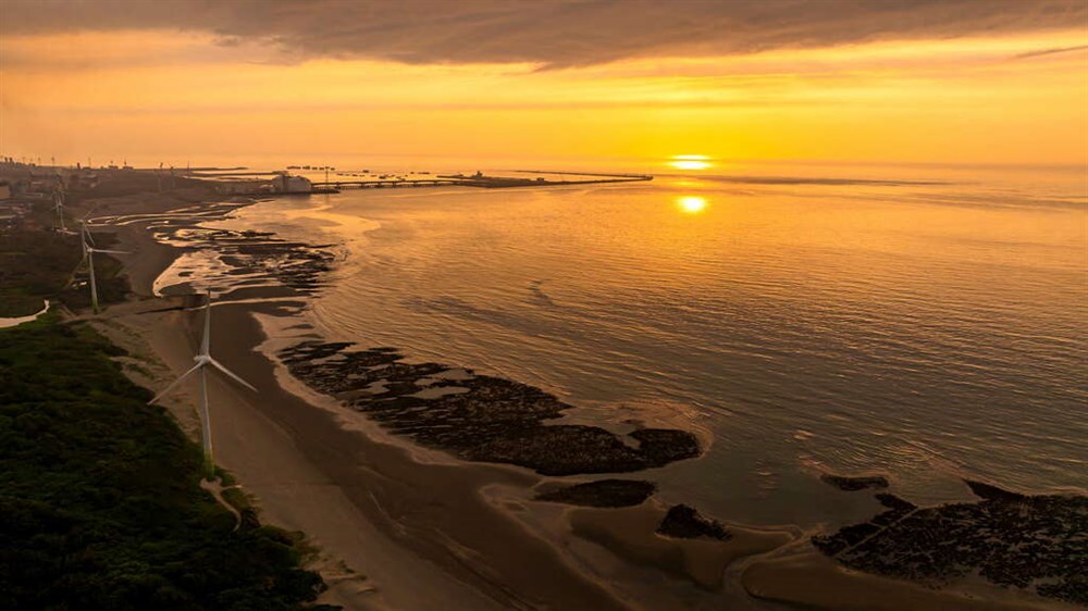 如果你以為桃園的海邊只有永安漁港和草漯沙丘,那你可就錯過這個絕美的隱藏版秘境了!位於觀音區的大堀溪出海口,「白玉海岸」低調卻魅力十足,是在地人私藏的夏日散步景點。沿著約 2.5 公里長的海岸線慢慢走,你會發現不遠處高聳的風車在海風中緩緩旋轉,而地面上一格格筆直排列的排水道,在退潮時浮現「小豆腐岩」般的紋理,搭配黃昏時分的天光海色,讓你不需濾鏡也能拍出電影感滿滿的寫真照。