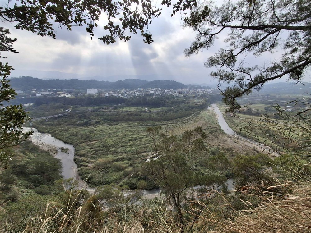 龍峎頂步道位於三灣內灣村的北側,長度僅約 1.5 公里,沿中港溪左岸火炎山(標高185公尺)稜線,步道名稱的由來與客家文化的風水觀念息息相關。「龍」指的是聚落背倚的山脈,「峎」則是客家話中「小丘之頂端」,因此「龍峎頂步道」顧名思義就是走在三灣聚落龍背上的路徑。這條路是早期農民運送作物至鄰近之北埔村貿易的聯絡道路,由於地勢險要突出,清治時期也會設有隘線防範漢人與原住民族發生衝突。