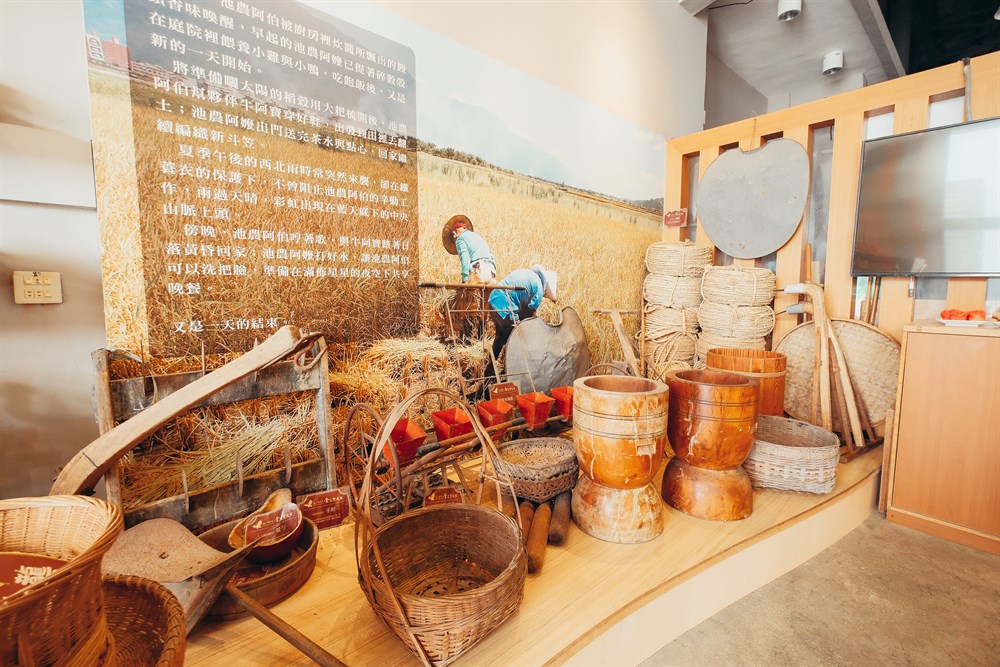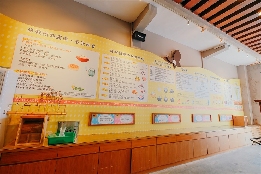金色豐收館不僅有文物區、體驗教室,還提供免費的場區預約導覽,以及禮品展售中心等服務及設施,成為結合精緻碾米加工與稻米教育的觀光工廠。另外也展覽了許多農事用具例如牛嘴套、秧盆、點心籃、風穀機等,有著濃濃的懷舊氛圍,讓人在參觀的同時亦能感受從事農作的辛勞。