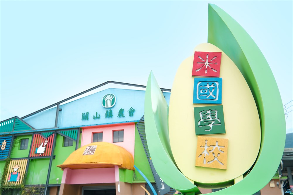 關山米國學校外觀是繽紛的彩繪屋,內部設有農產展售中心、米食DIY教室、水稻文物館等等,除了展售各種在地農產品,例如關山米、米製零食、米製甜點,以及各種在地農產品之外,現做的新鮮美食也廣受遊客喜愛,例如古早味碗公飯,不但使用關山米,配菜的蔬菜肉品也都是使用關山的時令食材,希望讓來訪的遊客,享用到關山農家引以為傲的美味農產。