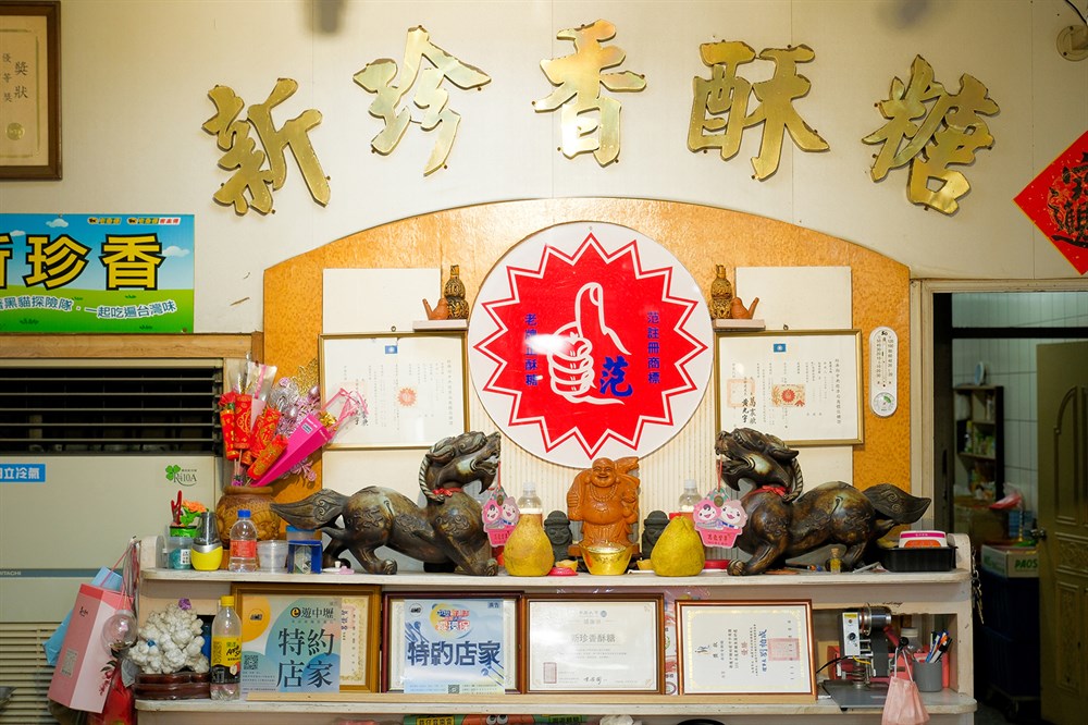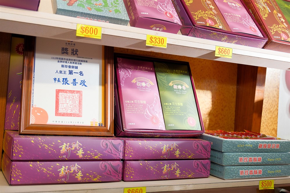 「新珍香」從民國十八年,26歲的范清漢帶著18歲新婚妻子白手起家,以「四個兩角半」即一塊錢為本錢買到一鍋花生,一碗麥芽糖就開張了。當年的製作方式是等到一鍋花生糖賣完了,才有錢去買第二鍋花生、第二碗麥芽糖,所以一天要跑好幾次市場。新珍香花生酥糖口碑出來後,銷路越來越好,夫妻常日夜趕工,等累積了一點小錢,也因為場地需要,便在中壢市中平路之處買了地建了目前的店面,自產自銷。新珍香以餅鋪為名,各式中點、西點與漢餅都很拿手,自光復初期,花生酥糖與鐮刀、牛雜並稱「中壢三寶」。