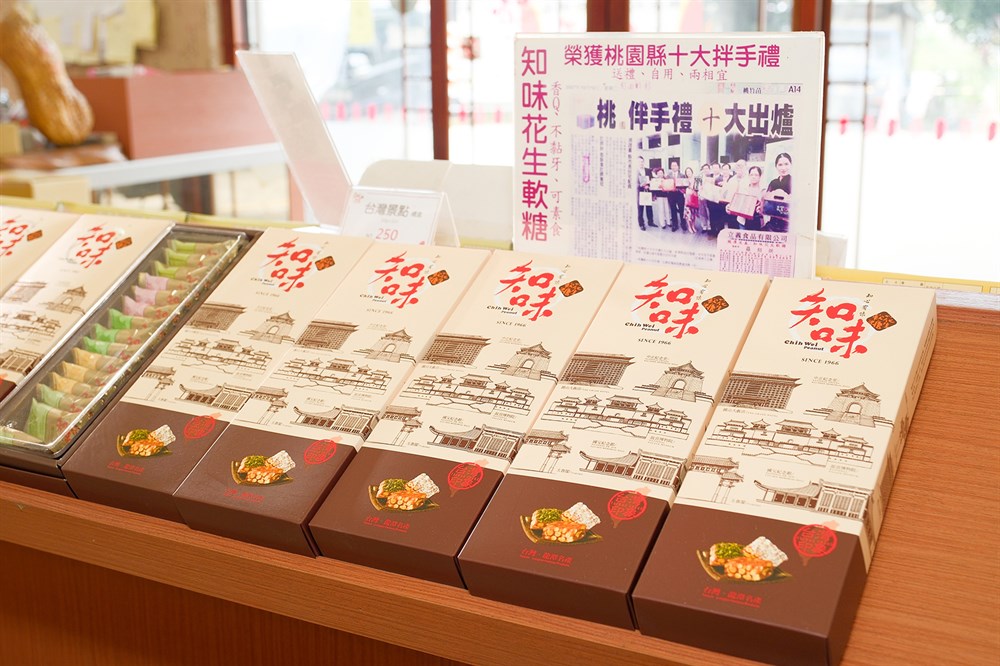 「知味花生軟糖」成立於1992年,標榜純手工並將花生混合麥芽糖的方式,製作聞名全臺的「不黏牙」花生糖,目前全臺擁有8家直營門市及多家加盟店持續不斷研發新產品,產品用心滿足消費者多元的需求,獲選桃園十大伴手禮殊榮,是遊歷臺灣龍潭最道地的伴手禮。