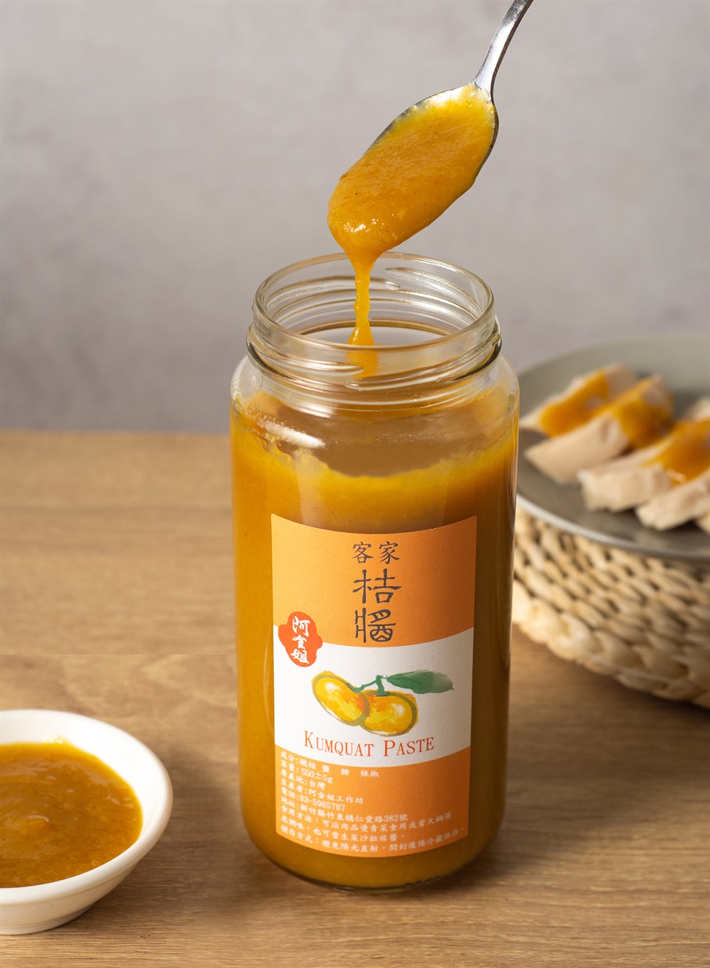 「每位嘗到我們家產品的人,都像家人一樣,我們希望他們可以更健康」從自家廚房醃梅開始,阿金姐開發多種醃漬產品,如一罐罐的醃梅經由時間的沉澱,醞釀出深厚的情感,以及相當受歡迎的桔醬、香桔汁,用心的醃製,細火的熬煮,用時間淬煉出每樣產品最精華的美味。這樣的傳統老味道,皆使用傳統方法製作,藉由阿金姐的堅持以及用心,傳承至每位顧客的心中。