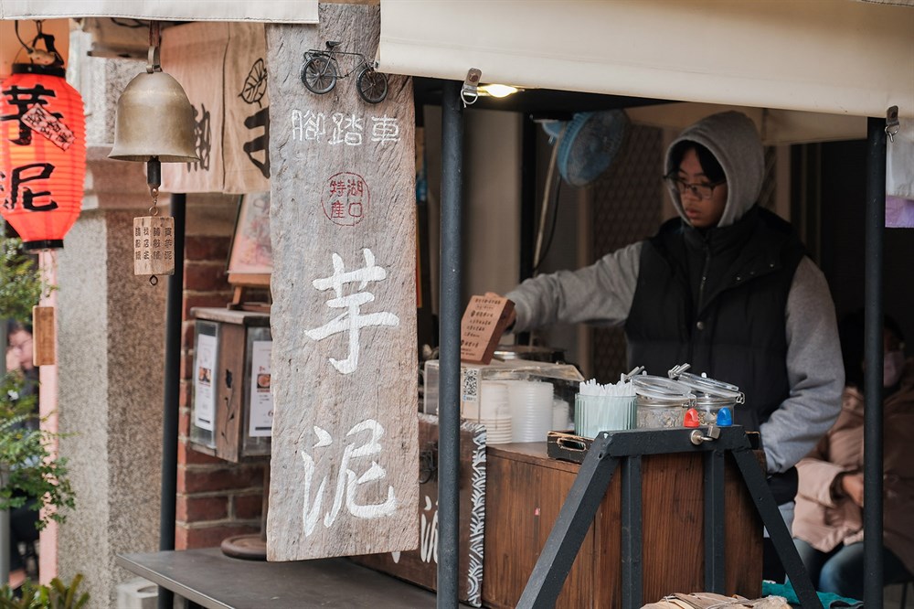 看似不起眼的小攤車,卻是老街的隱藏版美食,僅在週末才吃得到。店家雖只販售芋泥,但提供熱芋泥與芋泥冰兩種吃法,強調純天然,吃來口感綿密滑順,能嘗到芋頭淡淡清香與滋味。