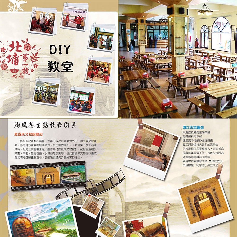 前身為連續三代以製茶為主的茶工廠,因新竹科學園區的興起導致北埔茶業的沒落,於民國91年搭上觀光風潮轉型為觀光工廠,創設了餐飲部門、膨風茶文物館、農產茶葉販售及各式DIY部門,發展觀光服務業,目前以客家菜+茶餐為主,如美人茶雞湯、茶葉炒飯、茶葉沙拉蝦球…等等。
