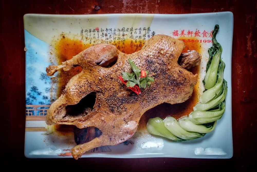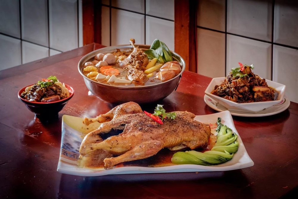 餐廳位於北埔口附近的南興街上,店前還有一頭二十年歷史的木雕水牛在此歡迎大家光臨!店內裝潢古色古香,每桌都鋪上油桐花的客家布,讓顧客在享用客家美食的同時別有一番感受。店內目前主推客家胡椒鴨,客家胡椒鴨是第一代外燴專用的客家大菜,每一隻客家胡椒鴨從一開始的前置清潔作業、再加入自製秘方配料、最後進入蒸籠把秘方的味道鎖進鴨肉,層層都由老闆娘親自把關製作,一入口就是滿滿的古早味。