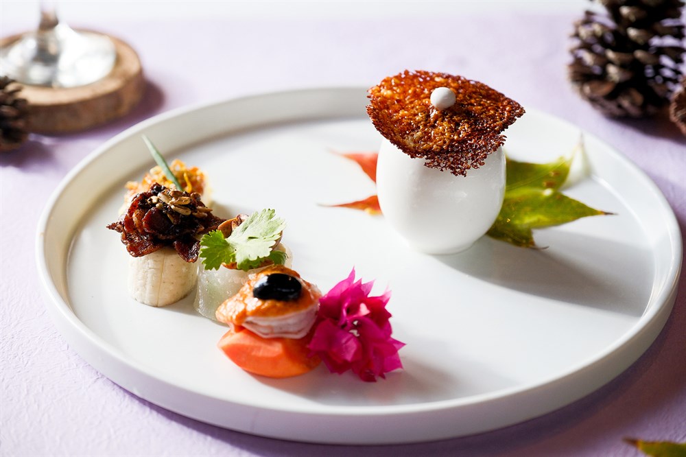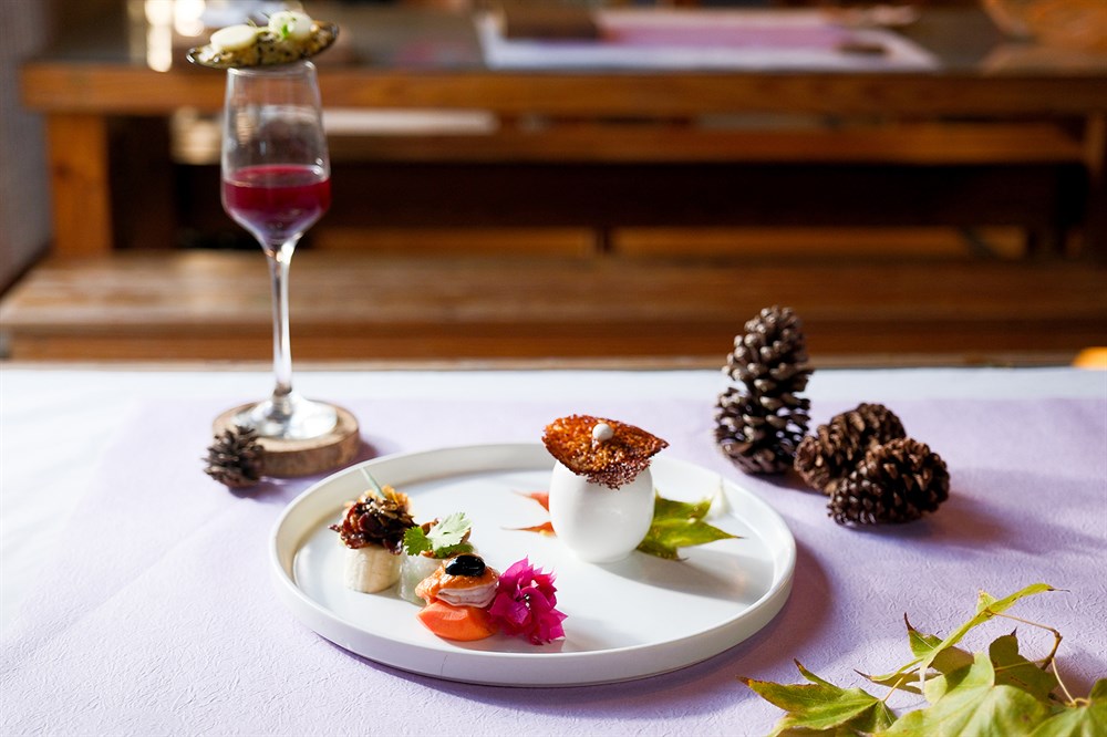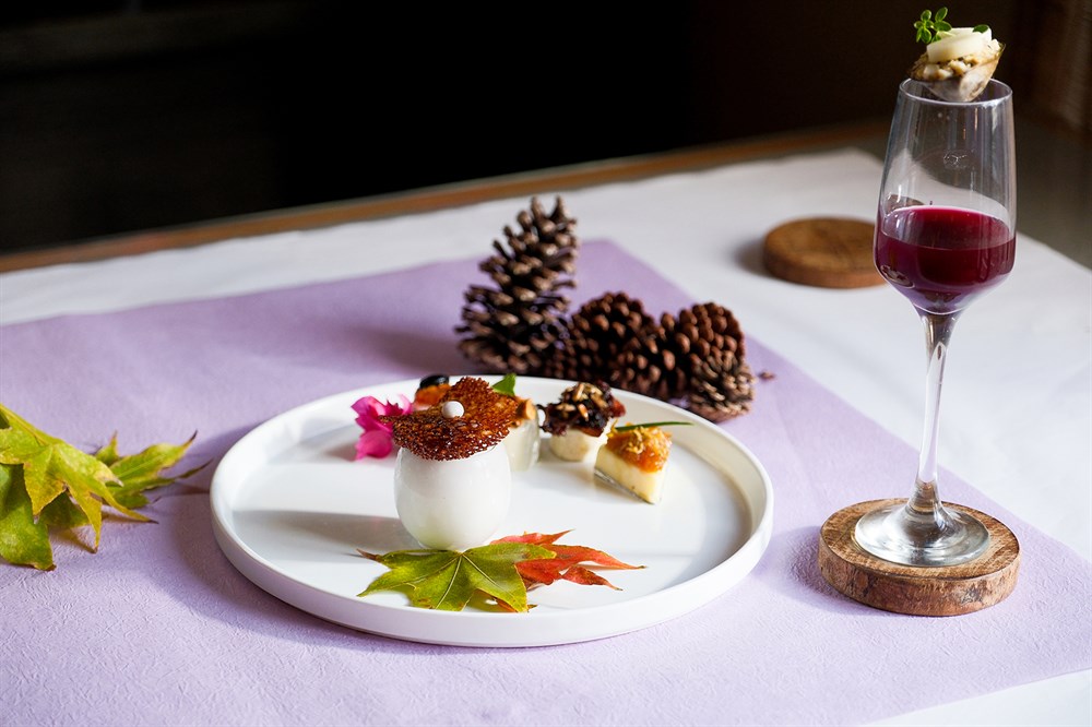運用100多種食材製成14道佳餚,搭配當季當地客家元素,再分成春夏秋冬四季、四套。