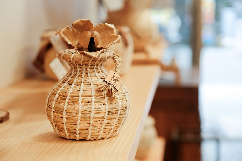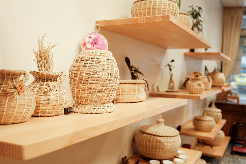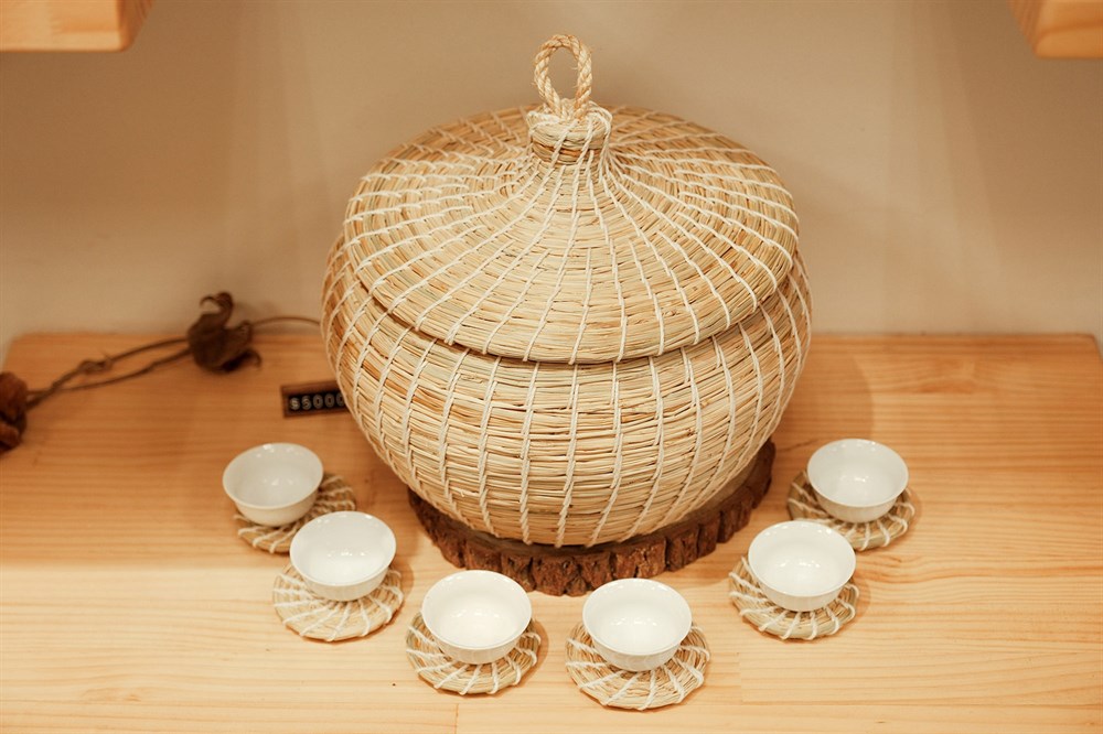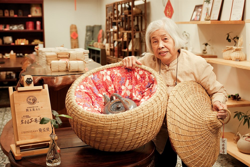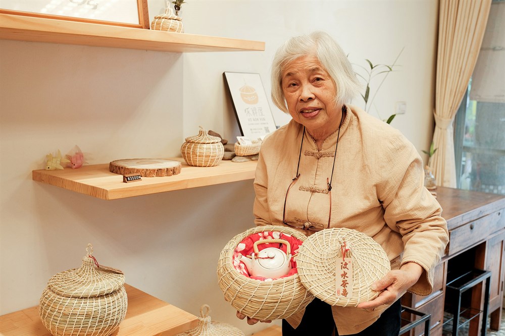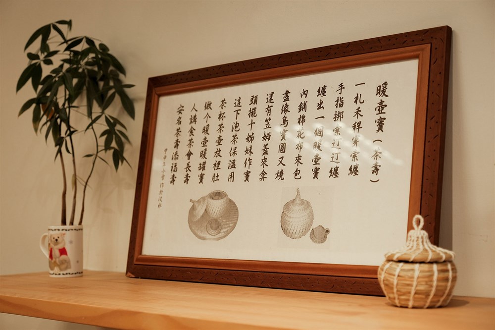 早期養鳥盛行,婦女們流行製作鳥窩,而汶水的婆婆們突發奇想,在鳥窩內部鋪棉,讓丈夫耕田時帶著,從清晨辛苦耕耘,到中午時分休憩時還可以喝到妻子親手泡的熱茶。而高齡80多歲的劉玉英女士從30歲接觸茶壽,便一路堅持至今,依然每天不停的編織,從鳥窩的雛型慢慢改良至現在茶壽的樣貌,從一群婆婆一起編織到僅剩一人堅持著「汶水茶壽」。從2020年開始跟著外婆學習茶壽的編織,並決定以「禾稈屋」包裝汶水茶壽,「禾稈」是客家話稻草的發音,除了因為茶壽是使用稻草編織外,挺直的稻稈也是外婆一直堅持的精神,而「屋」字象徵起初的鳥窩和家的意思,希望茶壽可以像當初婆婆們的心意一樣,帶給每個人像家的溫馨感。(文字取自於店家FB)