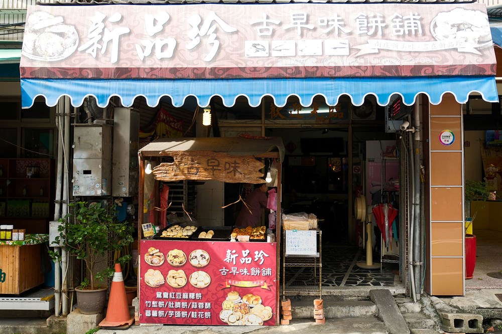 新品珍烘焙坊創立於民國68年,為當地歷史悠久的古早味餅舖。由第一代老闆自新竹百年餅店新復珍學藝,傳承純手工製作工藝,現已由第二代接手經營。以竹塹餅、芋頭餅、蕃薯餅及肚臍餅等傳統客家糕點聞名,堅持古法製作,保留傳統風味,致力於將傳統美味帶給當地居民及遊客。