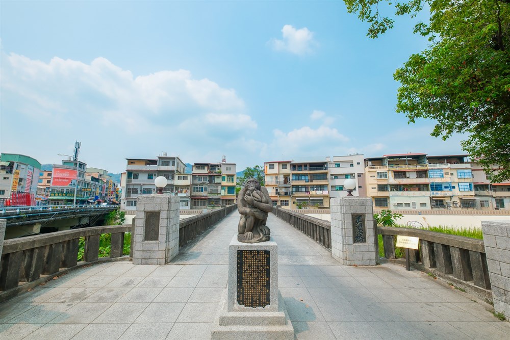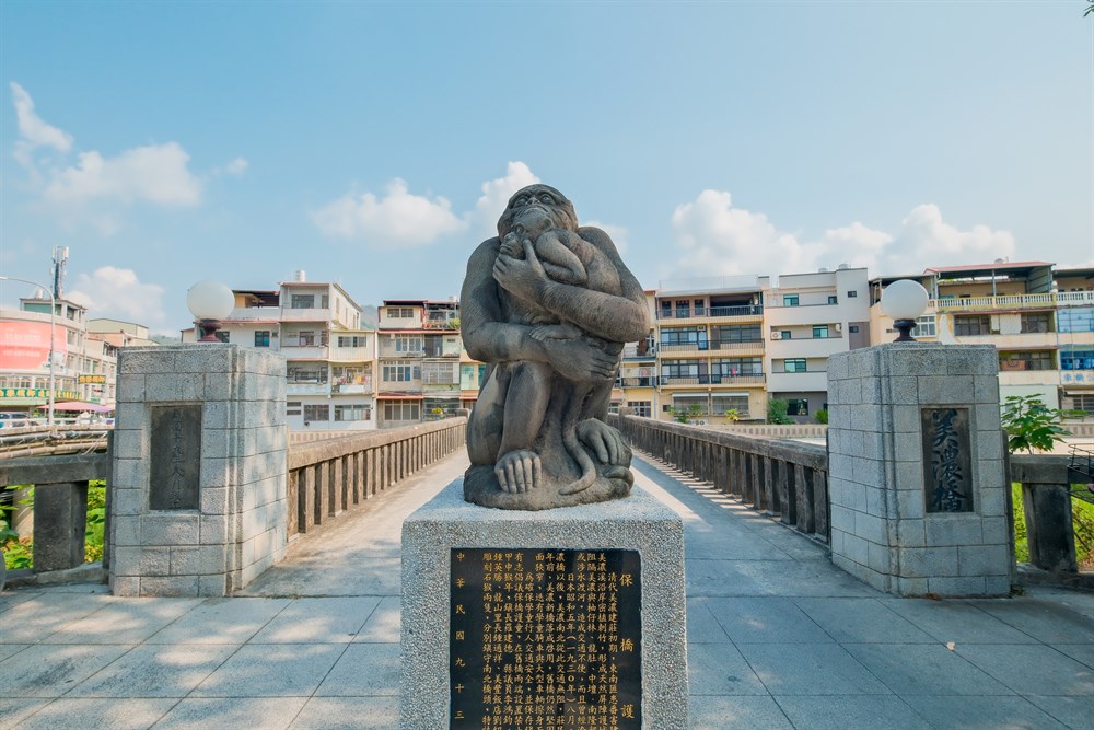 美濃舊橋的兩頭各設有一座石猴,稱為「保橋護童碑」,碑文上說明了名稱由來:2004 年正值猴年,為了禁止車輛再行走舊橋,以保護這座歷史築及仍使用舊橋的學童,因而立了石猴。