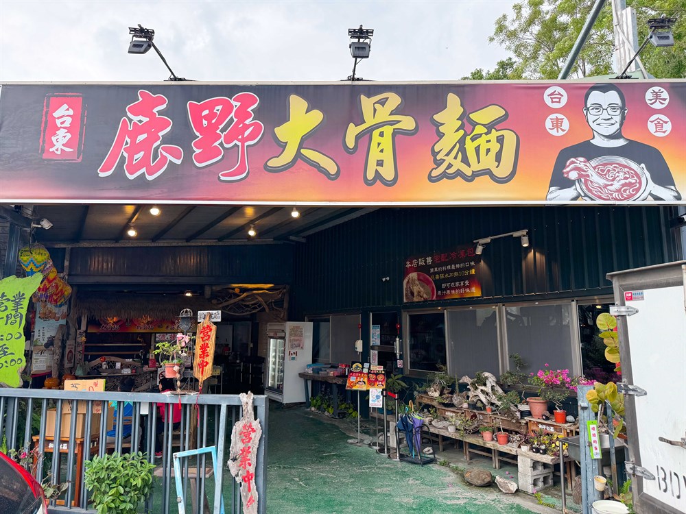 「鹿野大骨麵」由連續兩屆榮獲臺北市牛肉麵節冠軍的阿美族主廚返鄉經營。餐廳主打視覺震撼的「大骨麵」,每碗皆包含一根長逾 20 公分、飽含膠質的豬前腿大骨,肉質軟嫩且筋膜 Q 彈,豪邁啃肉的體驗深受遊客青睞。湯頭以大骨長時間慢熬,加入獨門香料呈現如牛肉湯般的甘醇與微辛,層次豐富且不油膩。此外,店內的「大腸頭」與「特製辣椒醬」亦是老饕推薦的明星品項。空間內裝運用大量漂流木建構出如藝廊般的原民風格,是全臺少見兼具藝術感與粗獷美味的麵食店家,提供旅客最道地的縱谷豪氣饗宴。