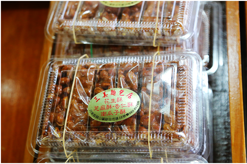 關山「三美麵包店」是一間擁有悠久歷史的傳統老字號,也是當地居民日常生活中不可或缺的味覺支點。店面保持著傳統質樸的樣貌,販售品項橫跨中西,從封仔餅、冬瓜肉餅到各式節慶米食如發糕、紅龜粿、草仔粿及蔴荖等,應有盡有。每一款糕點都遵循古法製作,味道濃郁且保有濃厚的「老味道」,尤其是封仔餅與冬瓜肉餅,更是許多老一輩關山人記憶中的甜點代表。三美麵包店不僅滿足了居民的日常與祭祀需求,其充滿古早味的伴手禮更成為旅人帶回溫暖情感的首選。這家老餅鋪如同一座活生生的飲食博物館,承載著無數人的童年回憶,讓人在每一口扎實的糕點中,品味到跨越時光的傳統工藝與溫暖情懷。