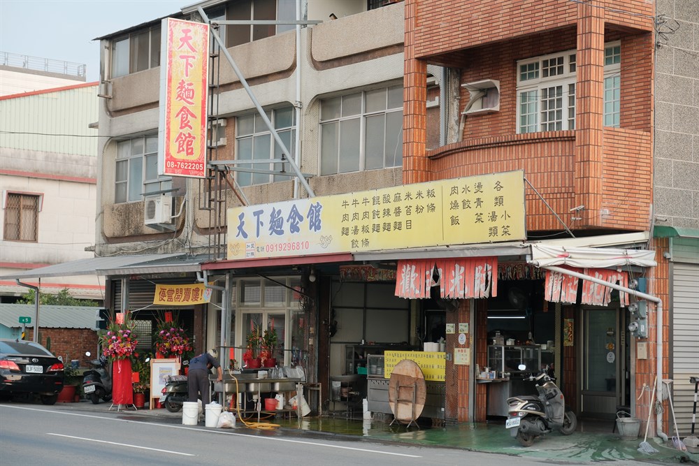 天下牛肉麵館是在地經營多年的高人氣客家麵食館。店家以分量十足且價格親民著稱,每逢用餐時段經常座無虛席。招牌主打「牛肉麵」,湯頭濃郁甘甜,選用半筋半肉的牛肉塊,燉煮至厚實彈嫩,搭配吸附湯汁的麵條,口感極佳。除了牛肉麵,店內的「麻醬乾麵」亦獨具特色,採用屏東在地純度極高的芝麻醬,並淋上客家風味肉燥,香氣層次豐富,麵條Q彈有勁。此外,店家的滷味小菜種類豐富且入味,價格實惠,是佐麵的最佳配角。店內環境乾淨明亮且設有冷氣,並提供寬敞的用餐空間,是往來遊客與在地居民品嘗道地麵食的優質選擇。