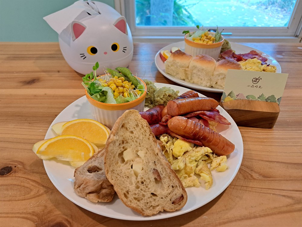 小森時光咖啡位於杉林區大愛園區,由「築夢新故鄉文化產業發展協會」經營,致力於推廣在地農產與社區文化。店內餐飲極具創意,將在地食材融入西式甜點與料理中。最具特色的「野蓮紅豆巴斯克乳酪蛋糕」,結合了美濃特產野蓮粉與紅豆,入口帶有淡淡草香與紅豆甜味,口感綿密不膩;「玫瑰水蜜桃塔」則展現了花果交織的清爽風味。在鹹食方面,提供豐富的早午餐拼盤,選用歐式麵包搭配德式香腸與時蔬,營養均衡。此外,店家亦運用在地梅子釀製梅子酵素飲,酸甜開胃。這裡不僅是品嘗創意美食的場所,更是認識杉林農特產與感受社區活力的最佳窗口。