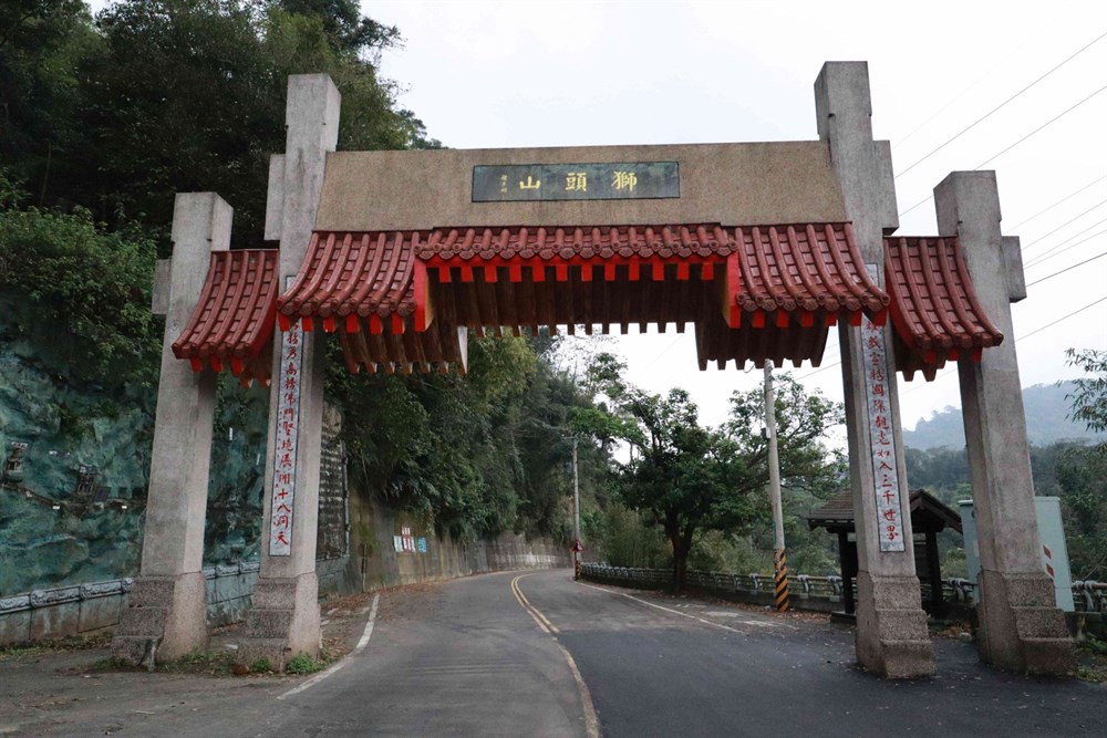 獅頭山座落苗栗縣南庄鄉與新竹縣峨眉鄉交界,海拔496公尺,全山層巒聳翠,奇岩林立,毓秀鍾靈,超塵絕俗。山中現有寺廟11座,大部分依天然岩洞建築,掩映於青山綠樹間,錯落有致,意境空靈,為全台著名弘揚儒釋道三教之聖地。獅頭山南面巨石峻峭,隔三灣溪與象鼻山相對峙;迤北崗陵起伏,盤屈於藤坪村六寮之間,其形酷肖獅子蹲踞之狀。清道光年間,淡水同知李慎彝以其形命名為「獅頭山」。