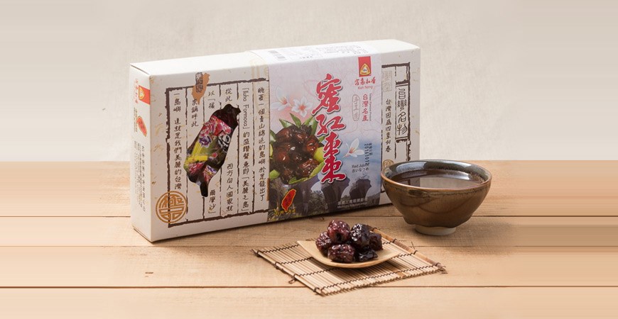 紅棗是苗栗公館特有名產之一,每年七、八月是紅棗盛產季,但也容易受天候影響,而造成紅棗落果或果裂,使得棗農辛勤所得化為烏有。「稻香客家米食」為幫助棗農增加收入,也希望保留傳統客家文化特色與天然食材的口感,將紅棗製成蜜餞,做成蜜紅棗,成為一道樸實又美味的甜點零嘴。