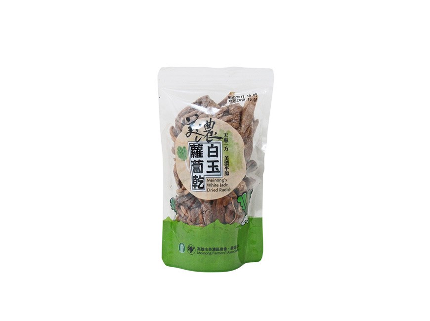 蘿蔔乾又稱為菜脯,是客家料理中最具代表性的食材之一,也是眾多蘿蔔加工品中最費時、耗力的一道。由於客家人愛物惜福的特性,所以當冬天蘿蔔盛產之季,客家媽媽就會依循古法,將過剩的蘿蔔用鹽醃漬脫水後,曬乾放置甕中保存,放置時間越久,會越甘甜越有味,因此存放超過10年以上的老蘿蔔乾被視為客家人的人蔘。美濃盛產白玉蘿蔔,品種雖然瘦小不如市場上的粗胖,但是卻有著獨特細緻的絕佳口感,蘿蔔的香氣經醃漬過後會更加明顯。