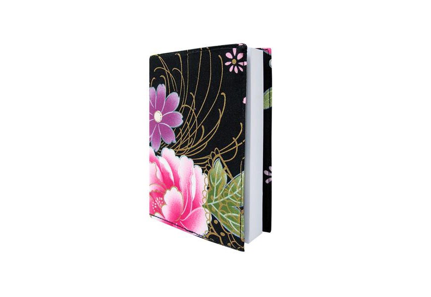 劉老師除了服飾創作外,更製作許多配件產品,因物件小巧,方便攜帶,使用者接受度高。本次所創作的包款除了利用客家花布,特別簡化配件設計,僅以巧思增加實用性,藉以襯托客家圖騰美感。包覆客家花布書衣的筆記本,結合不同材質應用,以嶄新的手法呈現創意的客家風尚,讓書寫也能充滿客家韻味。