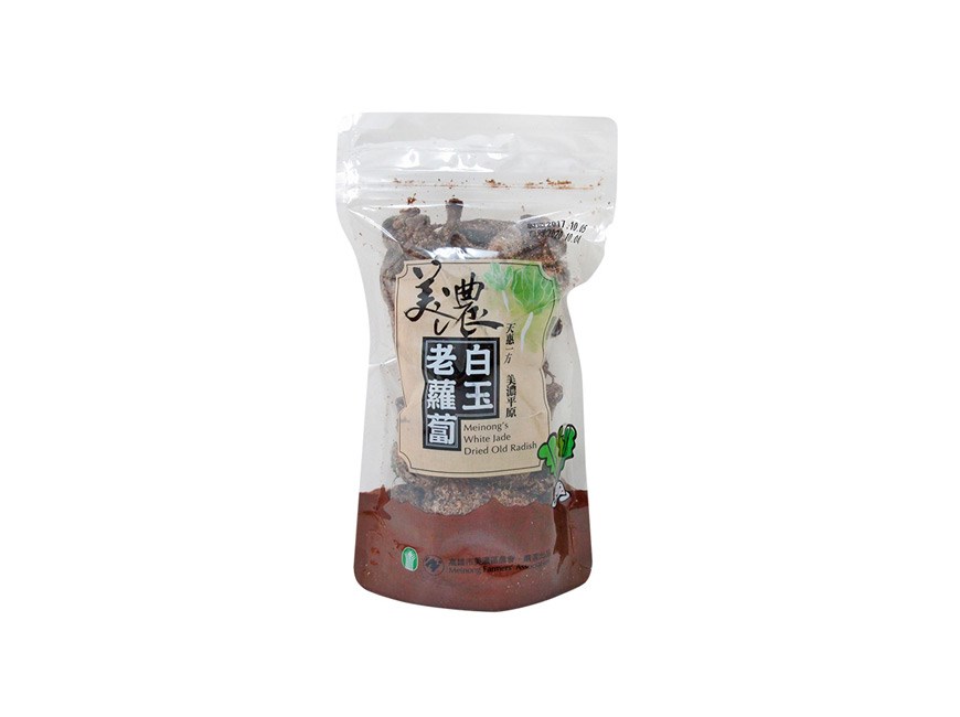 蘿蔔乾又稱為菜脯,是客家料理中最具代表性的食材之一,也是眾多蘿蔔加工品中最費時、耗力的一道。由於客家人愛物惜福的特性,所以當冬天蘿蔔盛產之季,客家媽媽就會依循古法,將過剩的蘿蔔用鹽醃漬脫水後,曬乾放置甕中保存,放置時間越久,會越甘甜越有味,因此存放超過10年以上的老蘿蔔乾被視為客家人的人蔘。美濃盛產白玉蘿蔔,品種雖然瘦小不如市場上的粗胖,但是卻有著獨特細緻的絕佳口感,蘿蔔的香氣經醃漬過後會更加明顯。
