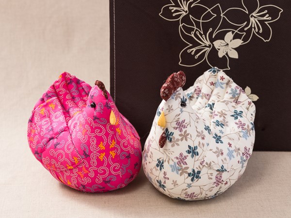 駿翔成立20多年,以「美角」品牌將布品設計成各式各樣飾品、布包與時裝等,銷售足跡已遍布世界各地。用一種要做最「美麗的角色」與「最用心的訣竅」,把豐富與熱情,藉由布面上盛開的花朵,分享給全世界的朋友。客家人在嫁女兒時會準備「帶路雞」,所謂「帶路雞」是由一隻公雞和一隻母雞,用紅帶子的兩端分別綁住一隻雞的腳,寓意新人永浴愛河。本產品採用有客家意涵的花布,手作縫製精緻花布雞,裝入雪白紗袋繫上紅色採線,喜氣又展現客家文化。