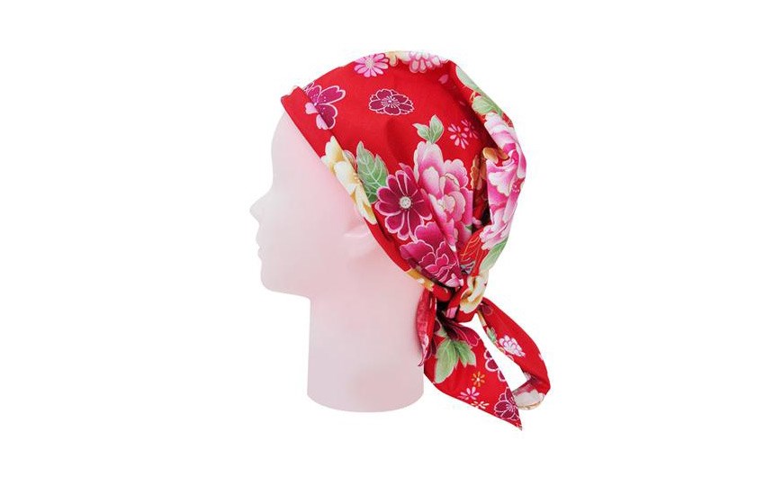 劉老師除了服飾創作外,更製作許多配件產品,因物件小巧,方便攜帶,使用者接受度高。本次所創作的包款除了利用客家花布,特別簡化配件設計,僅以巧思增加實用性,藉以襯托客家圖騰美感。大三角巾適合百搭風格,怎麼綁都好看,不僅是配件,更是流行時尚的單品。