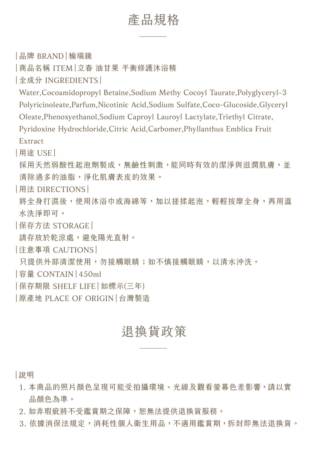 - 產品pH值4.5,貼近肌膚本身的天然酸鹼值(pH值)4.5~5.5之間。
