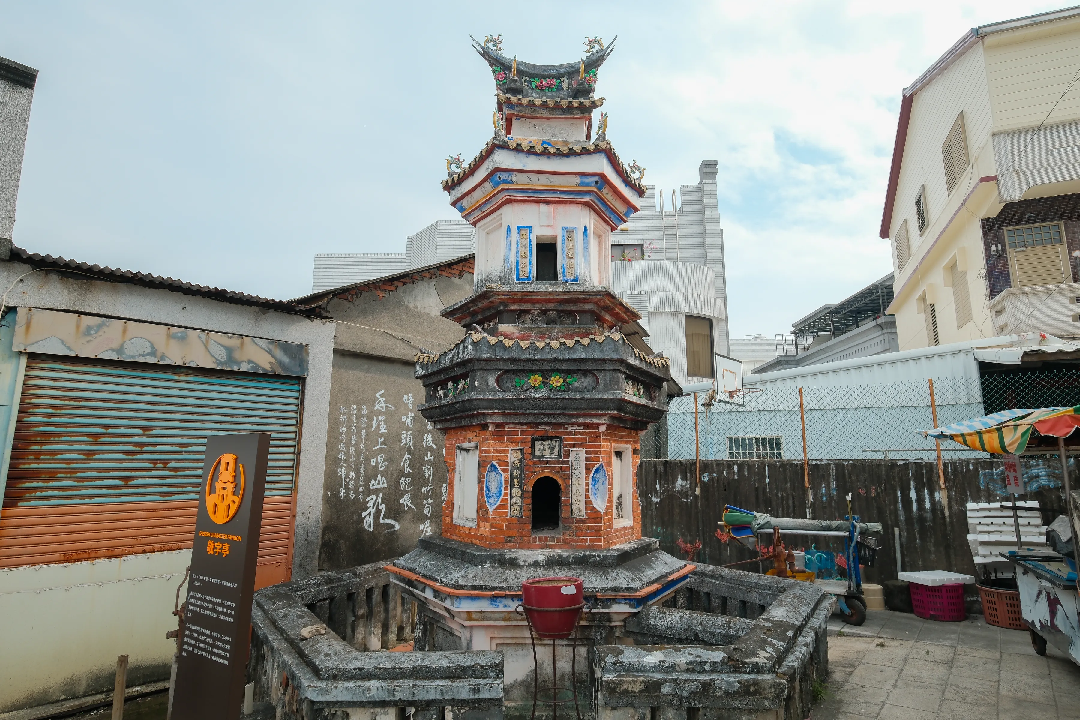 又名「聖蹟亭」,座落於古屋側邊,是一座興建於 1850 年且保存完好的細長寶塔狀建築。這座亭子深刻反映了客家人「惜字如金」的精神,認為寫有文字的紙張不可隨意丟棄,必須收集後在此焚化以示敬意。塔身兩層,底層用於焚化字紙,上層則供奉造字始祖倉頡先師與文昌帝君,在香煙裊裊之中,守護著地方文運昌隆,展現客家先民崇文教化的優良傳統。