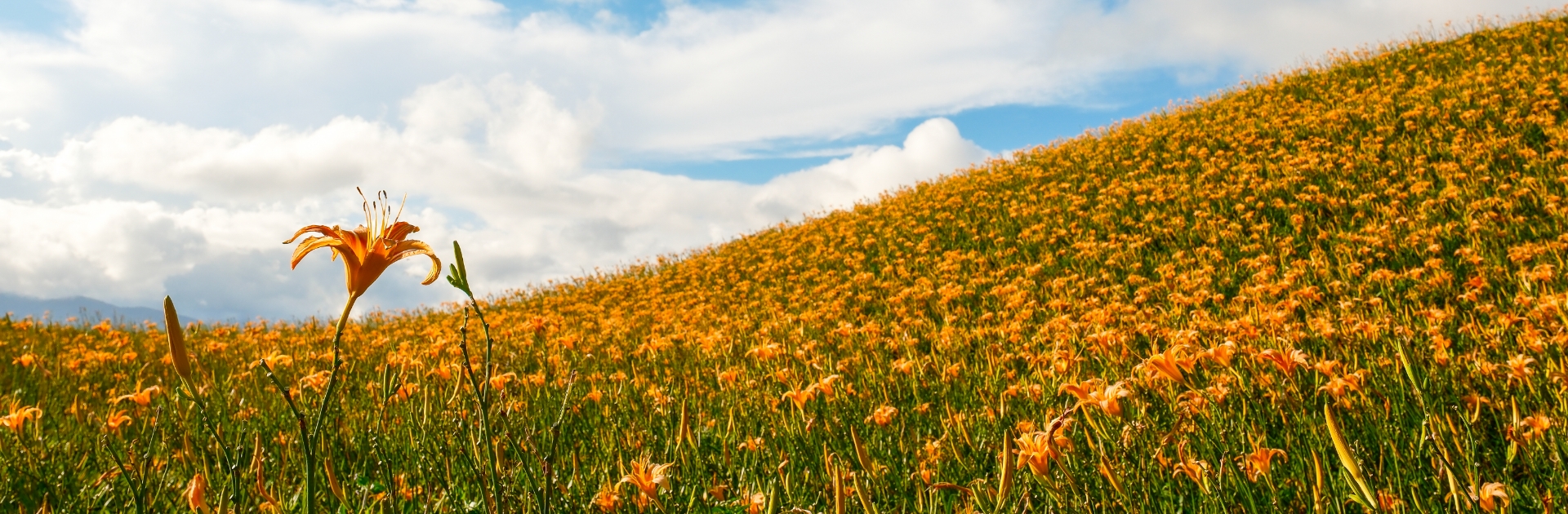 霧氣繚繞的六十石山上,有全臺知名的金針花海,賞花再品嘗金針花料理。富里花海景觀區有成片的波斯菊、薰衣草等等,還有稻草藝術裝置。改建後的富里車站以穀倉為意象,融入背後的翠綠稻田和山脈,一下車便感覺到悠閒氛圍,歡迎大家來散步漫遊。