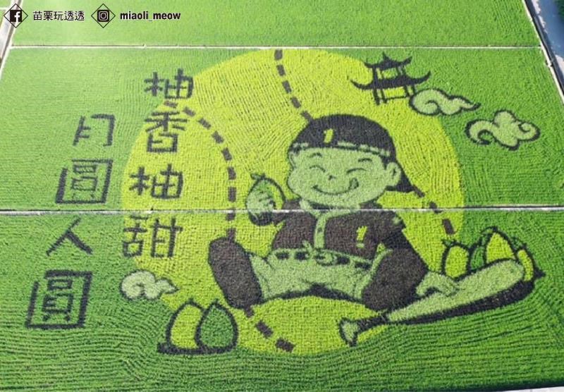 苑裡鎮農會擁有經驗豐富的彩繪稻田團隊,以黃、白、紫、綠色等多色水稻,造就360度無死角的稻浪美景;早期多以十二生肖為主題,近年來圖形多樣化,彩繪石虎、Q版媽祖像、耶誕老人、麋鹿及黃色小鴨等都是題材。