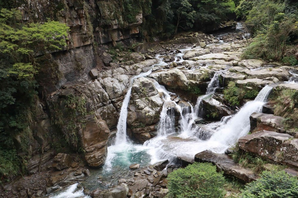 正所謂「橫看成嶺側成峰,遠近高低各不同」,從木棧道漫步到吊橋,能欣賞到不同角度的神仙谷瀑布,佇立橋上眺覽,上游是壯闊的河床,下游是碧綠清澈的峽谷,神仙谷的景致可說是盡收眼底!部落景觀餐廳 近距離欣賞瀑布美景 進入神仙谷步道的入口後,會看到醒目的七分醉瀑布景觀告示牌,餐廳內的牆上掛著色彩豐富的畫作及傳統圖騰,能感受到滿滿的部落風情,在這裡用餐除了能品嘗道地的原住民風味餐,還能聆聽餐廳老闆現場演唱,可說是放鬆身心的好去處;穿過餐廳沿著階梯走下去,便來到透明玻璃平台,遊客可以近距離觀賞磅礡壯闊的瀑布景觀,下過雨後雲霧繚繞於瀑布間,宛若置身於仙境,也難怪會有「神仙谷」的美稱。