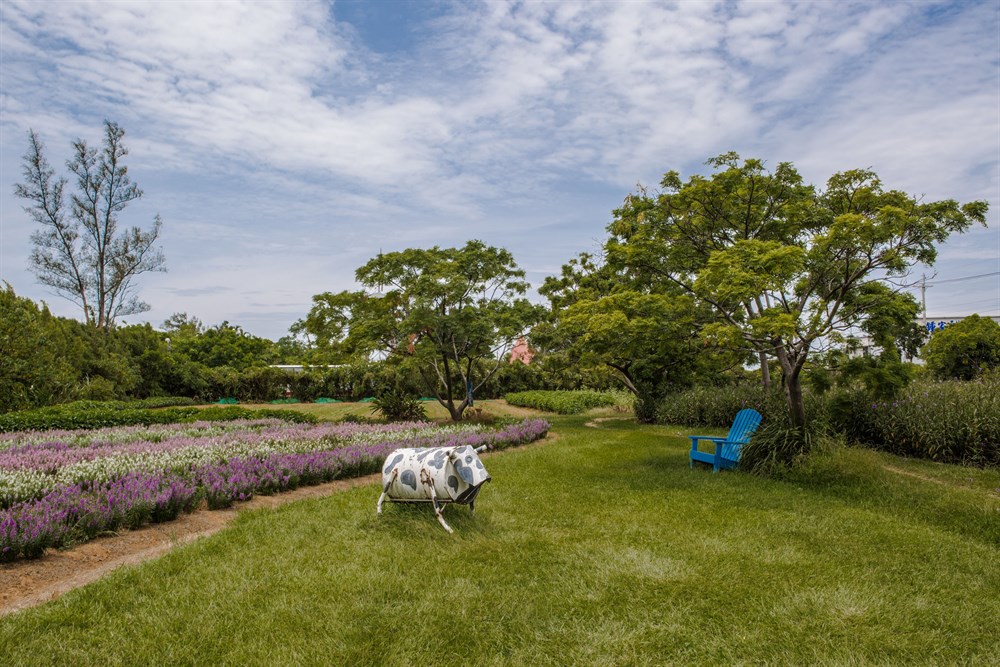 農場中央的大草坪提供孩子可以盡情奔跑、玩球的場地,還有沙坑、小火車、小型越野車等多樣的遊樂設施,讓孩子一眼就愛上!草皮四周還有運用廢容器製作而成的乳牛、貓頭鷹、小羊造景,相當俏皮逗趣。
