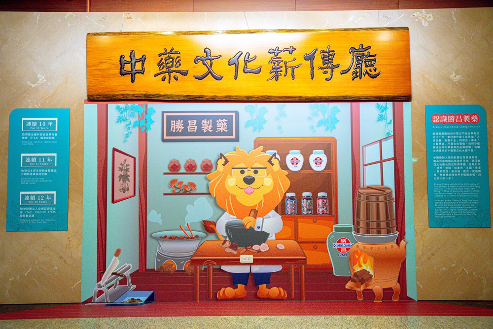 勝昌中草藥探索館分木、火、土、金、水五部方藥,館內展示超過百種中藥材,並透過互動多媒體與觸控製程小遊戲引發人們的興趣,設計出一套生動活潑的五感探索:用聽覺,進入中草藥的奇幻世界。用嗅覺,連結對味道的想像。用觸覺,感受藥材的能量與質地。用味覺,享受純粹健康的滋養。用視覺,觀察藥材的紋理與外貌。希望能啟發出一種生活態度,增進對自身以及對世界的敏感度和理解力,藉由中草藥之哲理打造的生活多樣性,不僅讓民眾更健康、幸福,也讓民眾的生活更多采多姿。