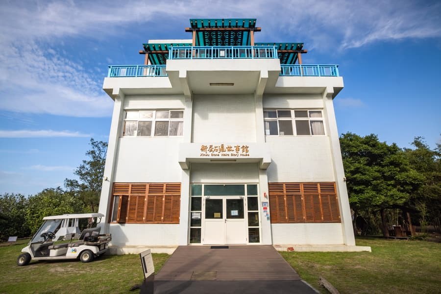 新屋石滬故事館:新屋蚵一哨所於1990年興建,早期做為警察宿舍,坐落在新屋蚵間海灘旁的防風林內,景色非常優美。隨著政府解嚴撤防後功成身退,逐漸成為無人使用的閒置空間。桃園市政府於2018年9月投入約700萬元經費進行整修活化。2020年3月完工轉型成為新屋石滬故事館兼遊客中心,提供到訪遊客瞭解在地傳統捕魚文化,同時兼具文化傳承及環境教育功能。