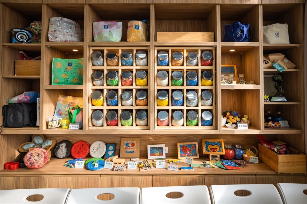 2F海創客教室:從漁滬文化保存延伸至海洋環境保護倡議,海創客教室透過海廢再生DIY手作教學,讓民眾從互動中意識到海洋保護的重要性。