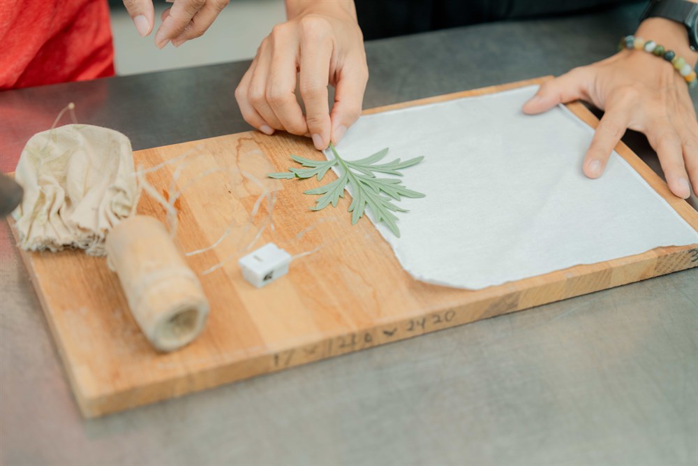 了解客家民族如何使用民俗植物-艾草,手作DIY體驗-艾草拓染燈飾,並品嚐客家小點-艾草粿。