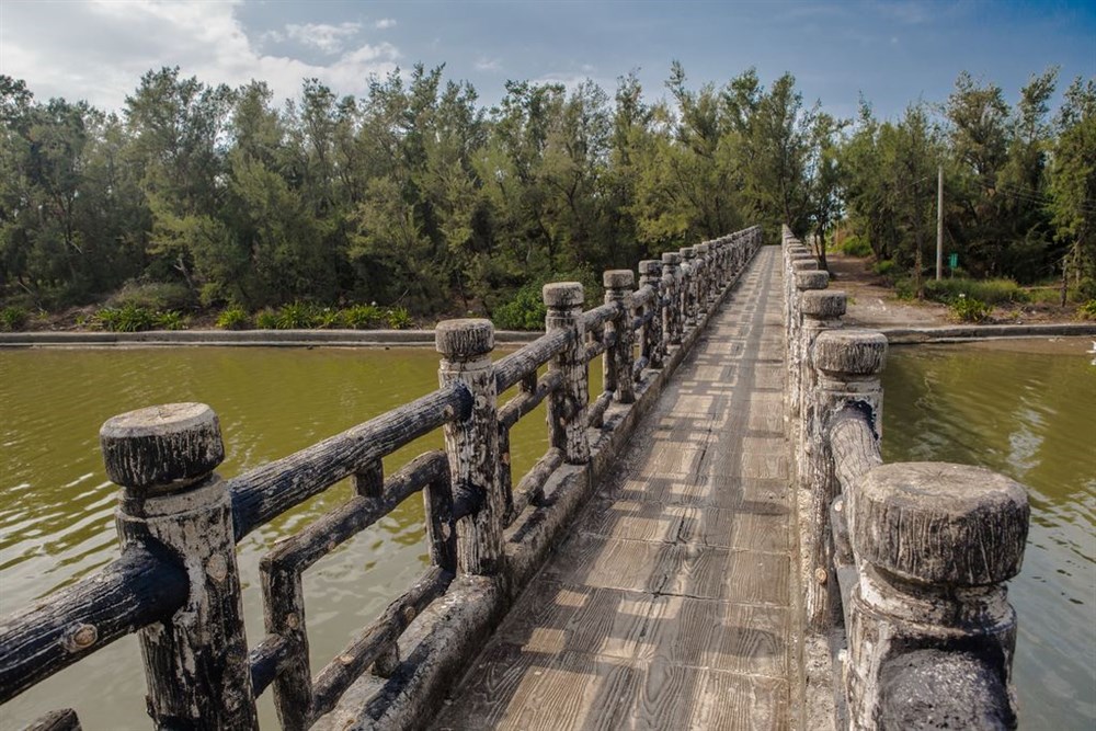 水泥橋的另一端,一整片的木麻黃防風林,曾是全台面積最大的防風林之一。行走在林間架設的木棧道,茂密的林葉柔和了灑落下的陽光,水岸散步更顯愜意。200多公尺長的木棧道,終點可抵新濱後湖溪橋,向左為觀海亭,雙層木造觀景亭,常見許多旅客在此歇息。一旁的觀海步道為永安北岸遊憩區最北界,全長約700公尺,對於想要更加親近大自然的旅客,相較於熱鬧的漁港,北岸更是不錯的選擇;聽海潮有節奏地拍打著岸邊、看一望無際的台灣海峽在陽光下璀璨發亮,秘境的美,令人沉醉。